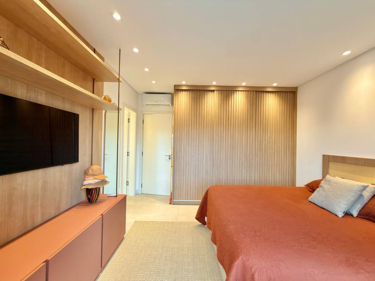 - 03 dormitórios (01 suíte com sacada) - 143m² de área construída - beira lago Sobrado mobiliado e decorado, com living integrado e cozinha americana com bancada, proporcionando ambientes modernos e funcionais. Conta com lavabo, churrasqueira e área de serviço fechada, além de todos os ambientes climatizados. A área externa dispõe de pátio com deck e paisagismo, além de vaga para dois veículos, oferecendo conforto e praticidade no dia a dia. Localizado no Condomínio Murano, com infraestrutura completa, incluindo piscinas, salões de festas, espaço gourmet, academia e acesso a praia particular com paradouro à beira-mar. Para mais informações, entre em contato conosco.