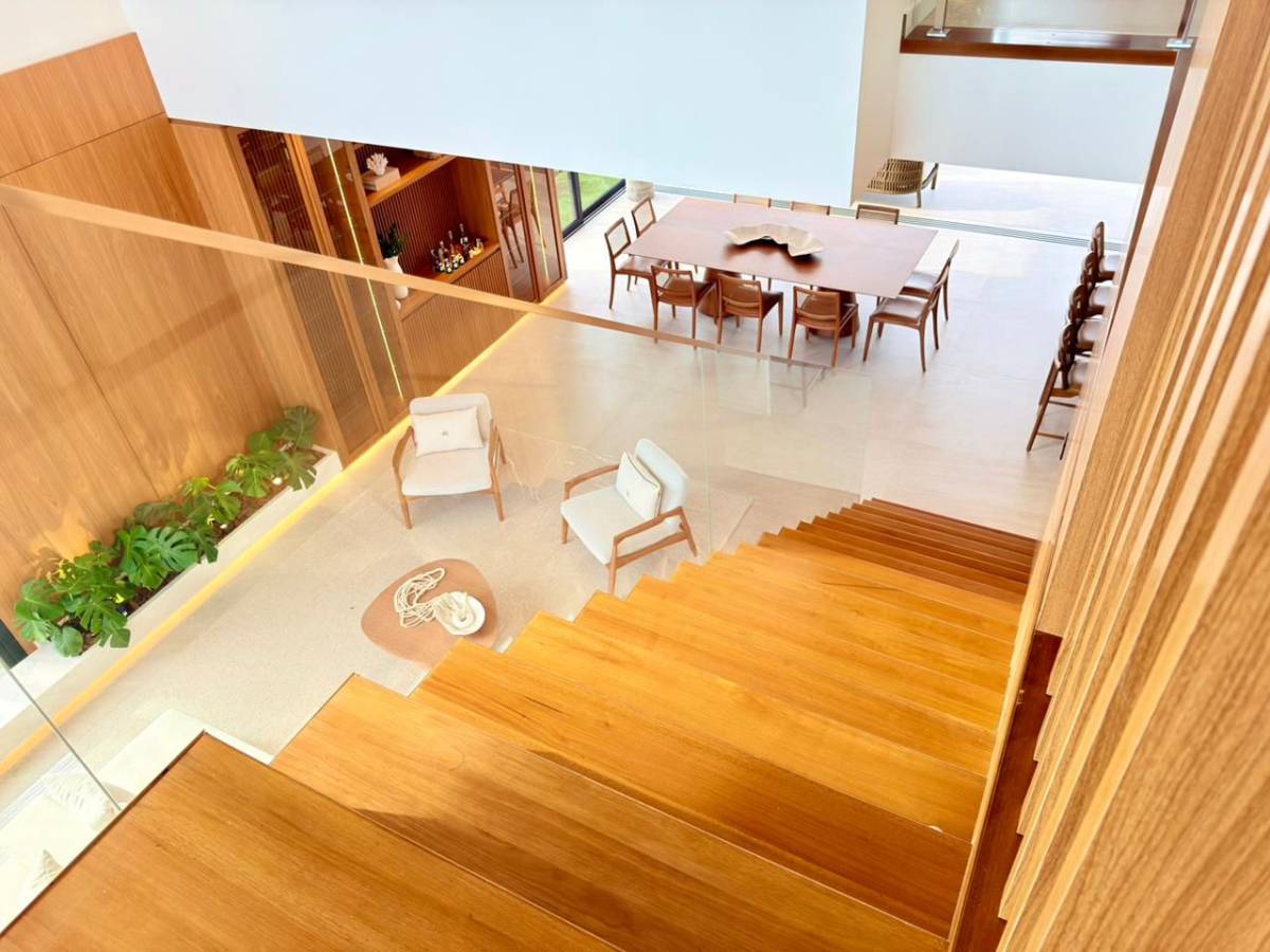 - Excelente condominio, com infra - Condominio de alto padrão - Beira lago Excelente casa de alto padrão conta com 5 suites(1 terrea), todas com A/C, 2 suites com closet e espera de A/C, suite master com banheira Sabiia dentro do box, escada totalmente revestida em madeira natural e guarda corpo com vidro laminado. Cozinha gourmet com churrasqueira com grelha Parilla+ Bifefeira, automação de iluminação A/C, ampla lavanderia com uma lava e seca + espera para outra maquina. Deposito que tambem pode ser transformado em dependencia de empregada, casa finamente mobiliada incluindo moveis externos, piscina de concreto com preinha, deck em garapeira com tecnologia sem grampos, banheiro da piscina com box/ducha interno. Um belo jardim completo e de muito bem executado, bem iluminado, com irrigação e poço arteriano. Para mais informações entre em contato.
