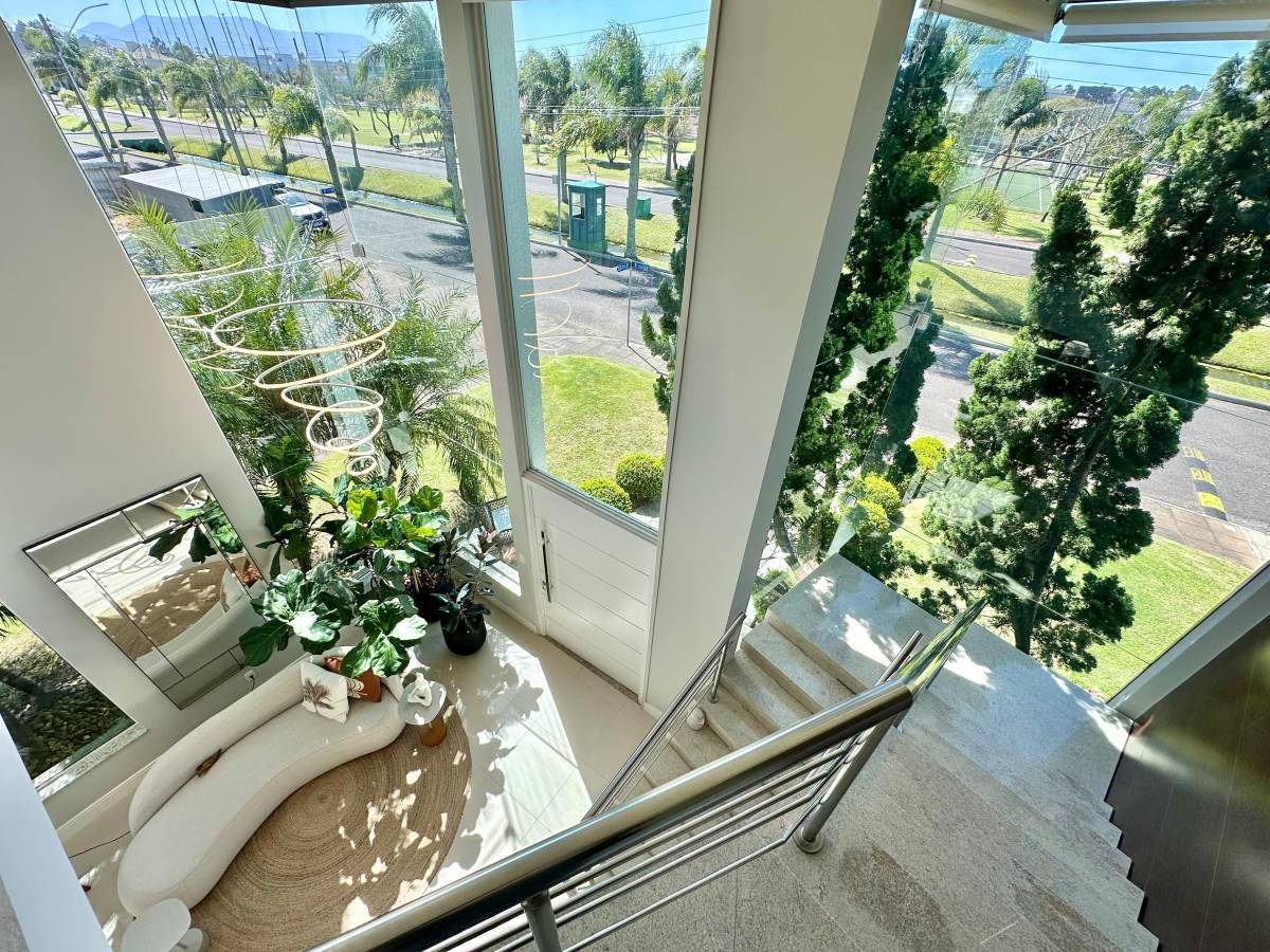 - Casa com energia solar - Condominio completo - Proximo da infraestrutura Sobrado de alto padrão no Condominio Condado de Capão, são 4 suites, lavabo, pe direito duplo, sala extremamente ampla junto a sala de jantar, area gourmet com churrasqueira eletrica uma linda mesa de bilhar que se transforma em uma excelente mesa de jantar, lindo deck com jandinagem de irrigação automatizada. Sobrado finamente mobiliado e decorado.