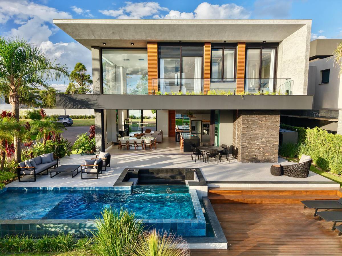 - Condomínio Malibu - lote de esquina - Ótima orientação solar Belíssimo sobrado em um dos condomínios mais luxuosos da praia de Xangri-lá, lote de esquina, ótima localização no condomínio, fundos voltado para o lago. São 5 suítes, sendo 1 suíte térrea com acessibilidade, suíte Master com closet e banheira, Home office, living integrado com 66, 00m² e pé direito duplo, lavabo social, cozinha Gourmet com churrasqueira, lavanderia + 2 depósitos independentes, lounge externo para o lago com 105, 85m², lavabo exclusivo para área externa, piscina com 18, 75m² + estar seco e borda infinita, deck de madeira de lei sobre o lago, abrigo para 2 carros com espera de tomada para carregamento, jardim com irrigação, esquadrias em PVC preto, sendo os dormitórios com persianas motorizadas e tela mosquiteiro.